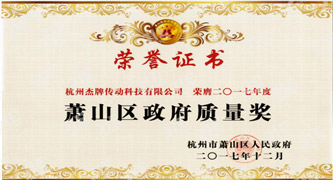 杰牌傳動榮膺“蕭山區政府質量獎”殊榮