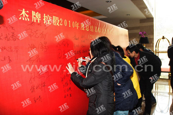 2011年01月30日,杰牌控股2010年度總結表彰大會暨員工答謝晚宴在蕭山航民賓館隆重舉行,會議對2010年度“杰牌形象獎、杰牌業績獎、杰牌精英獎、總裁獎”代表進行了表彰,并對優秀員工頒發了“杰牌汽車基金”、“杰牌住房基金”。大會會議通過“頒獎儀式、代表發言、部門工作報告、總裁工作報告、集體合同簽訂”等系列活動總結了2010年工作,明確了2011年目標,鼓舞了全體員工的信心和士氣,為十二五目標任務的完成奠定了扎實的基礎??偨Y表彰大會后全體員工參加了答謝晚宴,董事長&總裁陳德木先生致祝酒辭,晚宴在全體員工合唱《杰牌之歌》聲中推向高潮。