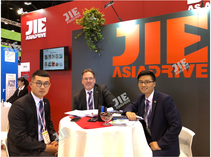 ? ? ? 2018年09月10日-15日,杰牌美國公司與歐洲、美國、日本等一線品牌同臺競技,亮相芝加哥IMTS2018展覽會。杰牌傳動董事長攜杰牌美國總經理和總工程師等一行6人向來賓系統展示了JRT齒輪減速電機、JRH工業齒輪箱、JRP行星齒輪箱、JRST蝸桿減速機、JD電動機、JCM變頻一體減速電機等整體傳動解決方案,通過專業交流與溝通獲得了客戶的積極響應。為全面提升美國客戶和美洲客戶滿意度提供了專業保障,杰牌為全球好客戶做好產品!